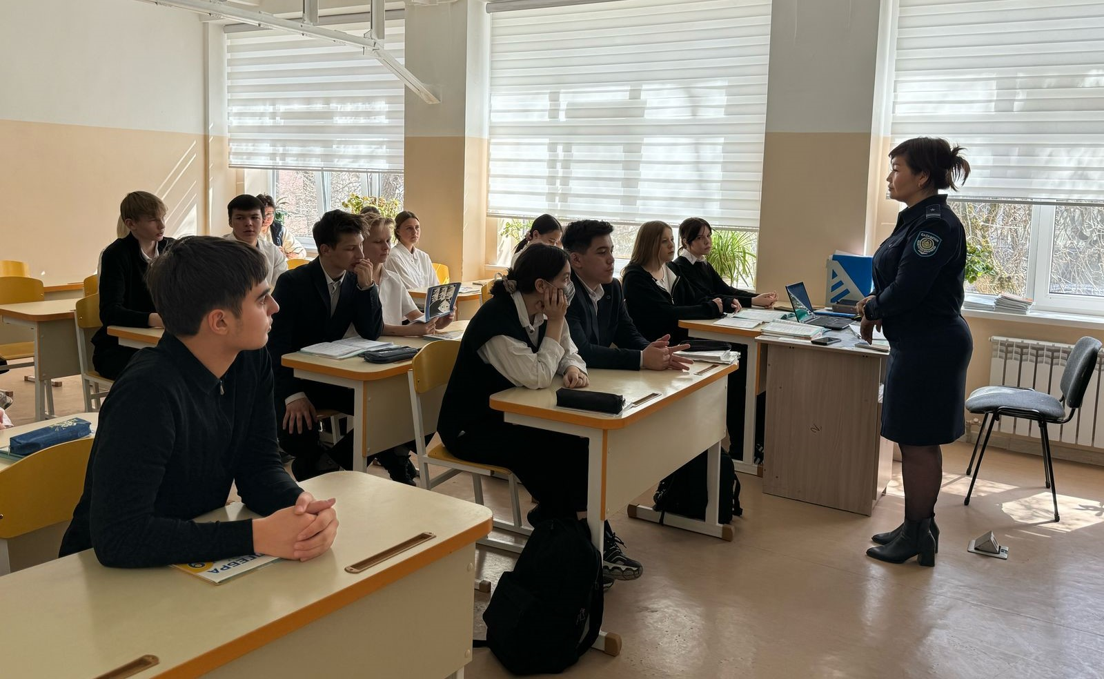 Орта және жоғары сынып оқушыларына инспектор «Мопедтер мен электросамокаттарды пайдалану кезіндегі қауіпсіздік» тақырыбында түсіндіру жұмыстарын жүргізді. Жолда жүру ережелері, қорғаныс құралдарының қажеттілігі және жол ережелерін бұзған жағдайда болатын жауапкершілік туралы айтылды.