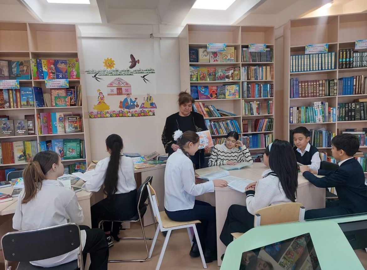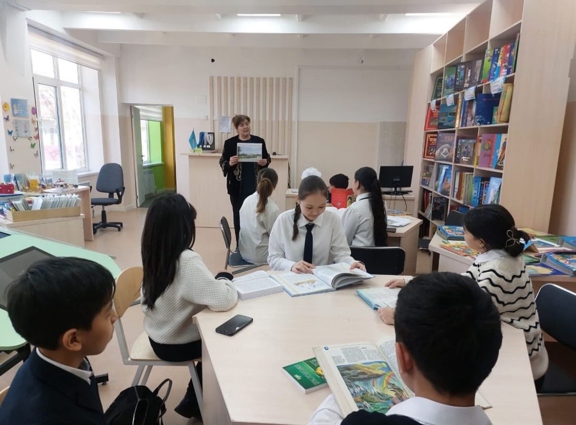 7"Ә" сынып оқушыларымен кітапханада танымдық сағат өткізілді. Провели познавательный час с учащимися 7 классов в библиотеке