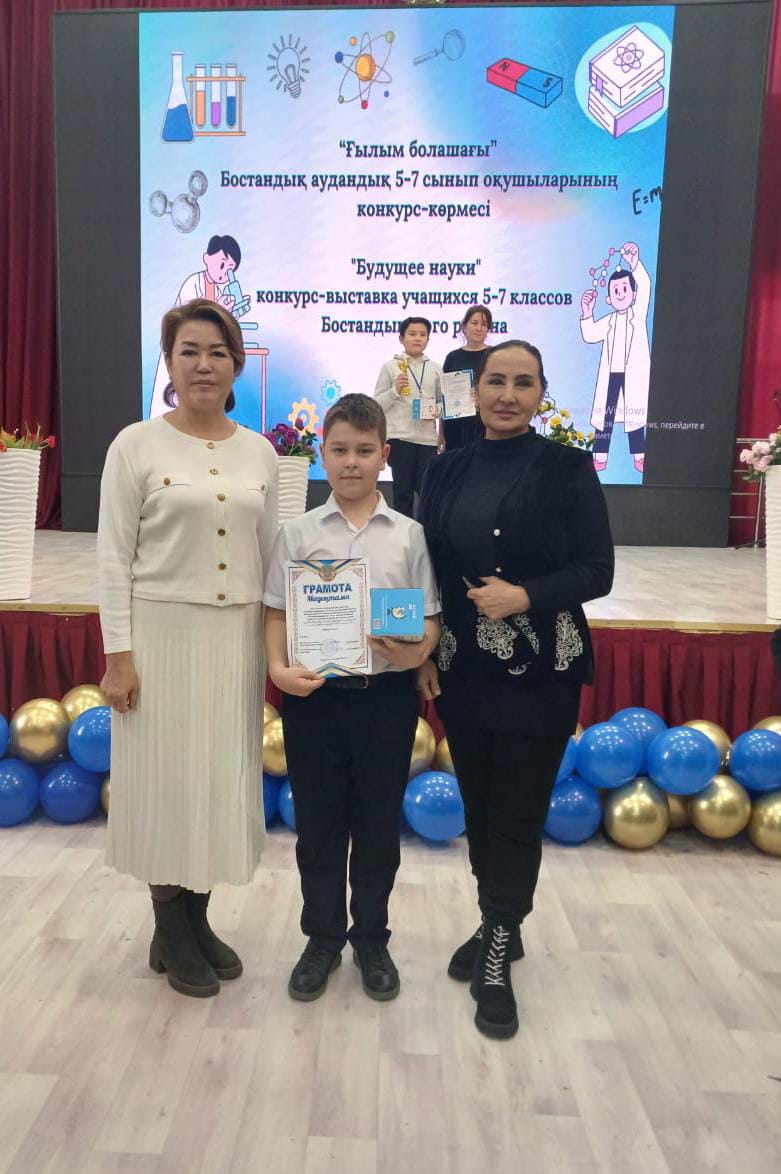 Бостандық ауданының 5-7 сынып оқушыларының "Ғылым болашағы" байқау-көрмесінде біздің мектептің 5 сынып оқушысы Егерь Семен "Жасанды интеллект адамға дос немесе жау" ғылыми-зерттеу жобасын қорғау бойынша мақтау қағазын алды.