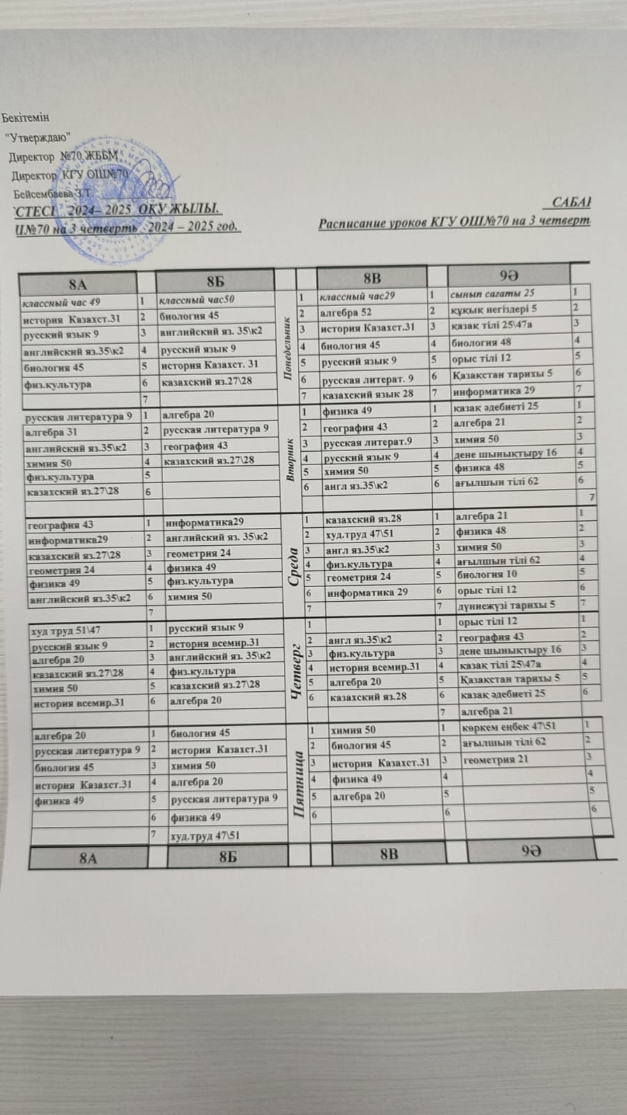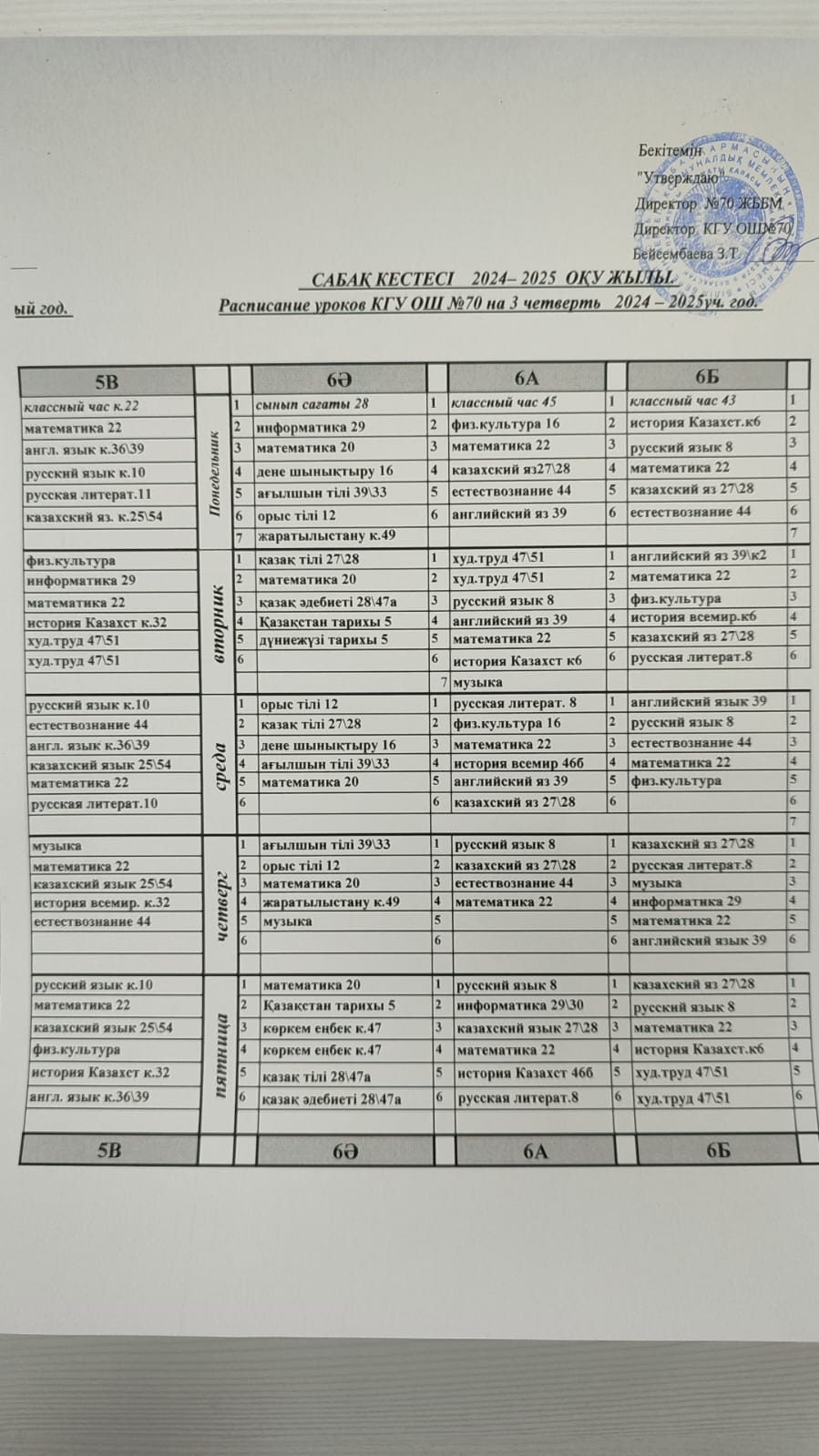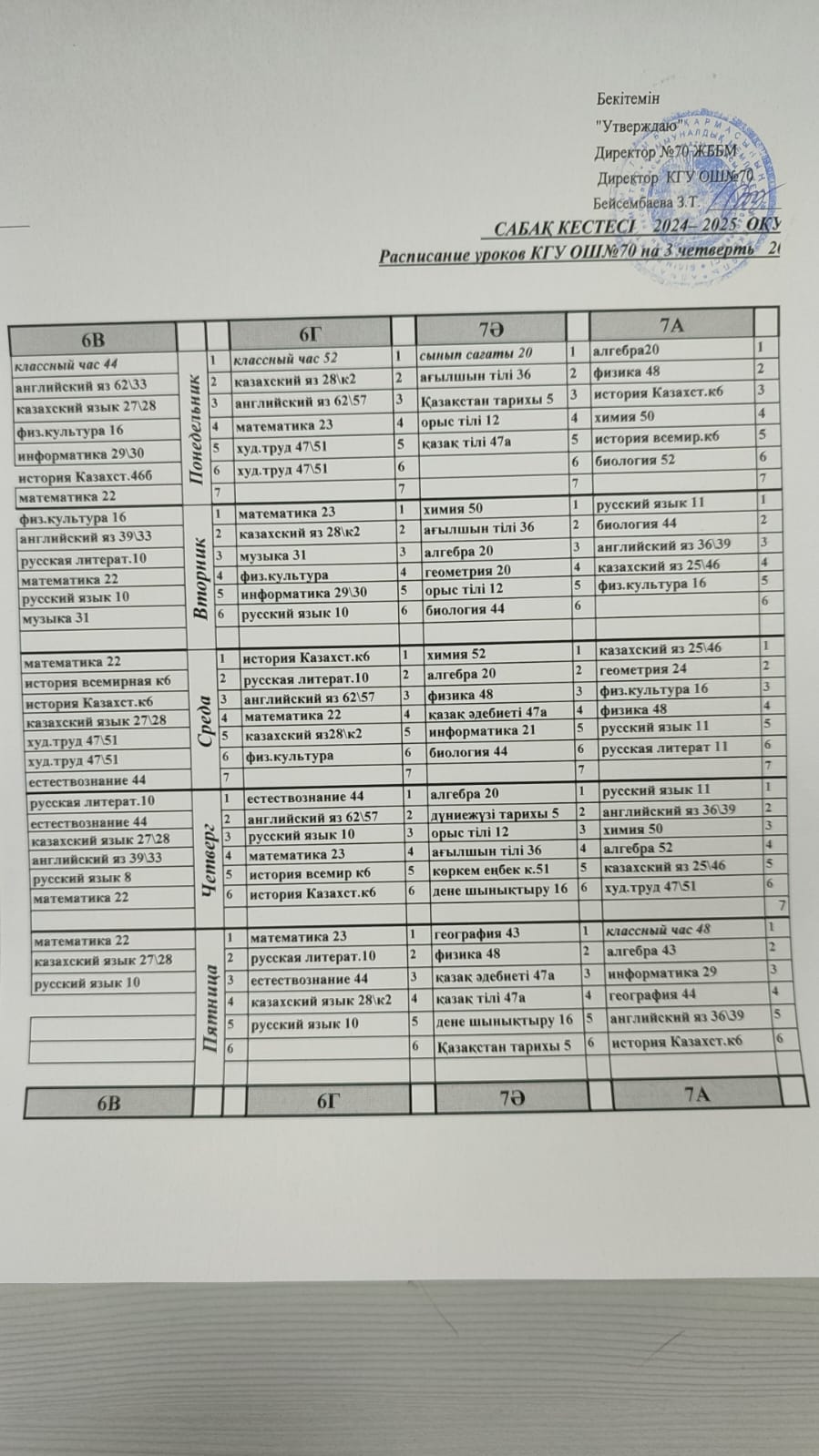 КГУ «Общеобразовательная школа №70 » Управления образования г.Алматы