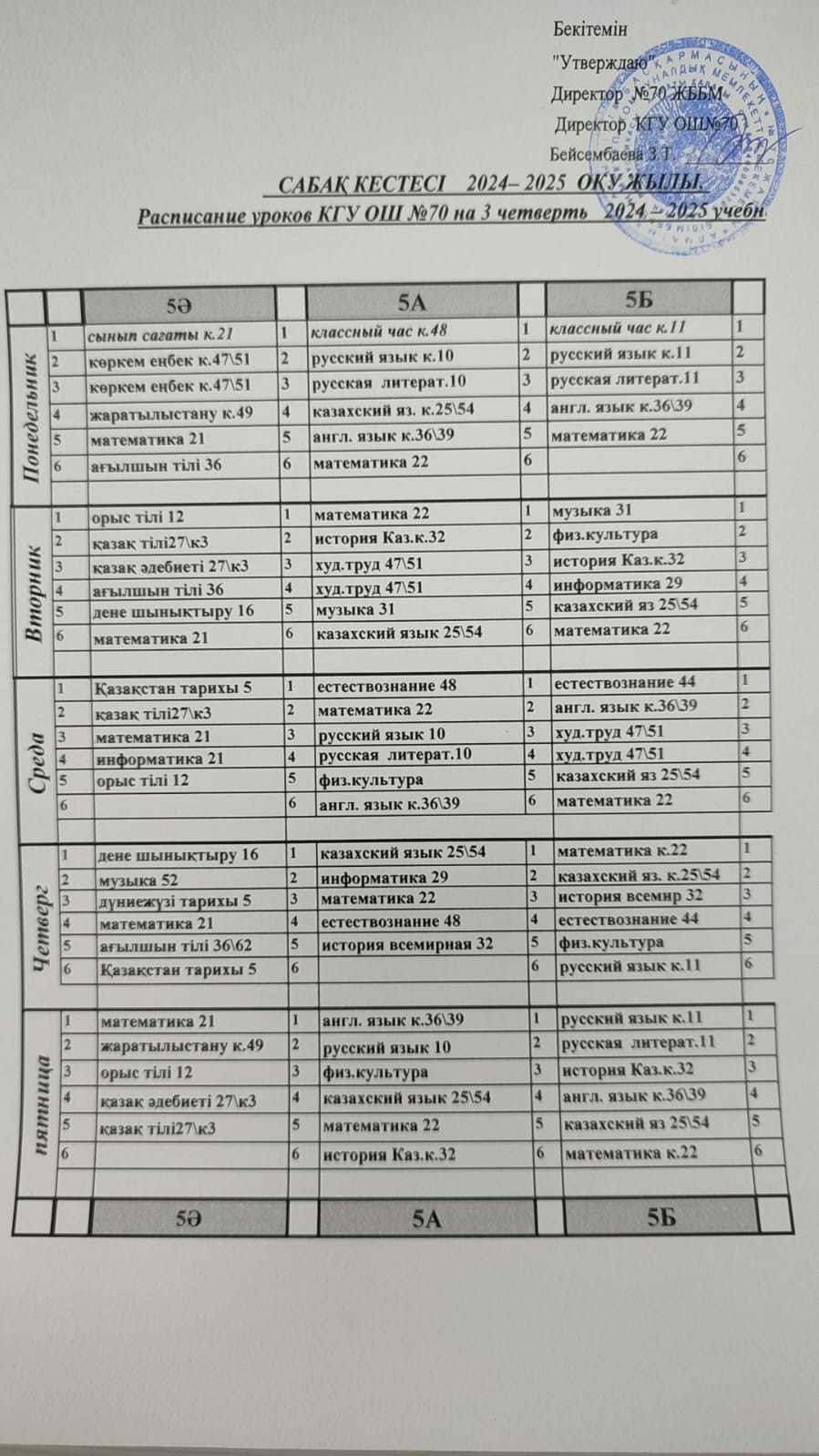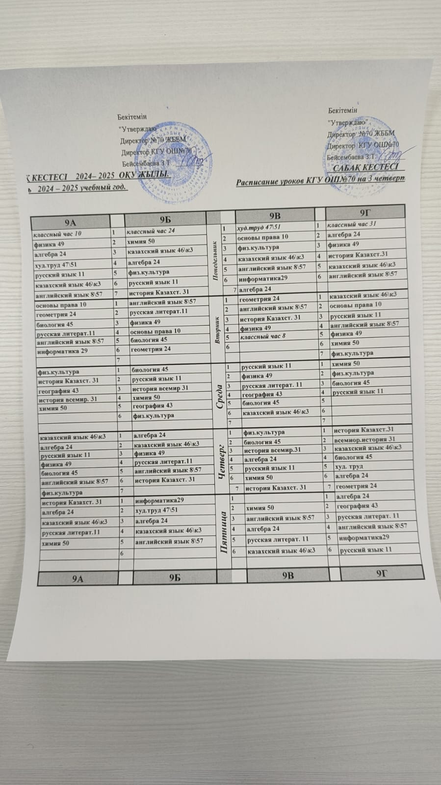 Расписание уроков 5-11 классов на 2024-2025 учебный год