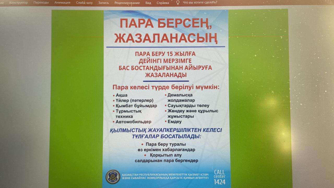 «Біз – жемқорлыққа қарсымыз!» тақырыбында сынып сағаттары. Классные часы на тему "Мы — против коррупции!"