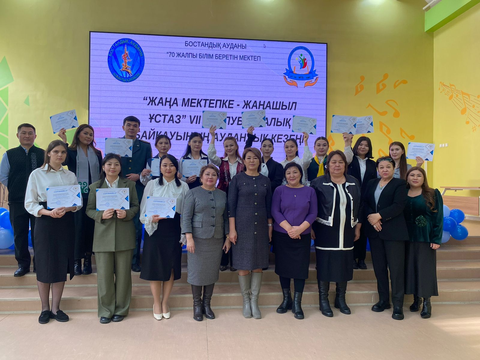 Жас педагогтердің шығармашылық әлеуетін дамыту, кәсіби шеберліктерін жетілдіру және олардың инновациялық идеяларын қолдау мақсатында дәстүрлі түрде өтетін «Жаңа мектепке – жаңашыл ұстаз» атты жас педагогтердің VII Республикалық байқауының аудандық кезеңі сәтті өтті.