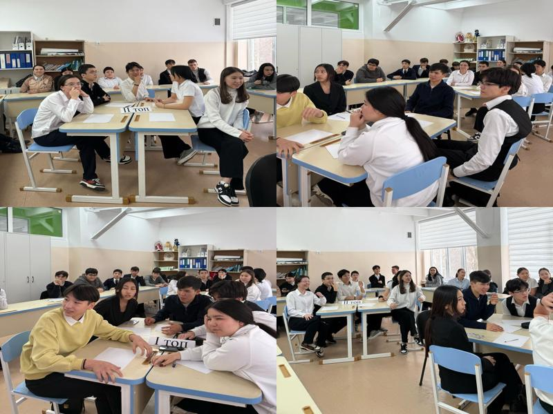 Бүгін қазақ тілі мен әдебиеті пәні бірлестігінің онкүндігі аясында 9-10 сынып оқушыларының қатысуымен “Қызық екен…” интеллектуалды ойыны өтті! Оқушылар өз білімдерін сынап, тапқырлықтары мен жылдам ойлау қабілеттерін көрсетті.