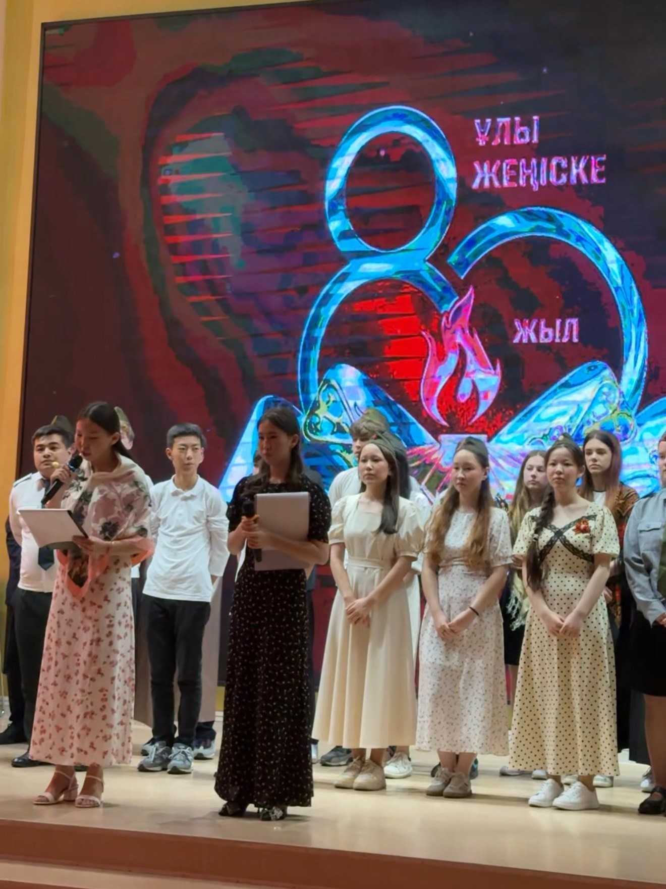 Оқушылар соғыс жылдарындағы әндерді шебер орындап, сахналық көріністер арқылы сол кезеңнің рухын жеткізді.