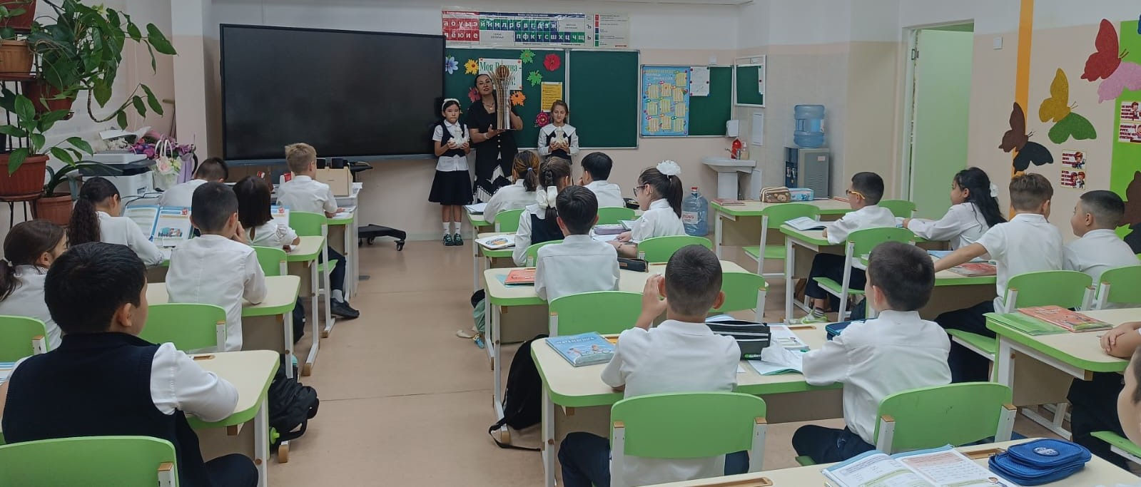 Сегодня в нашей школе, в честь Дня знаний и первого звонка нового учебного года, был проведён единый классный час на тему «Мой Отчизна – Казахстан».
