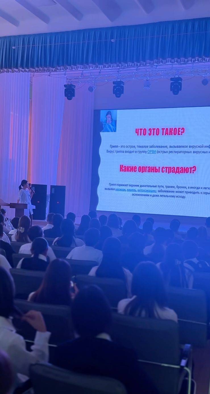 Бүгін №17 қалалық емхананың дәрігерлері оқушыларға ЖРВИ, тұмау және олардың алдын алу тақырыбында танымдық лекция өткізді.
