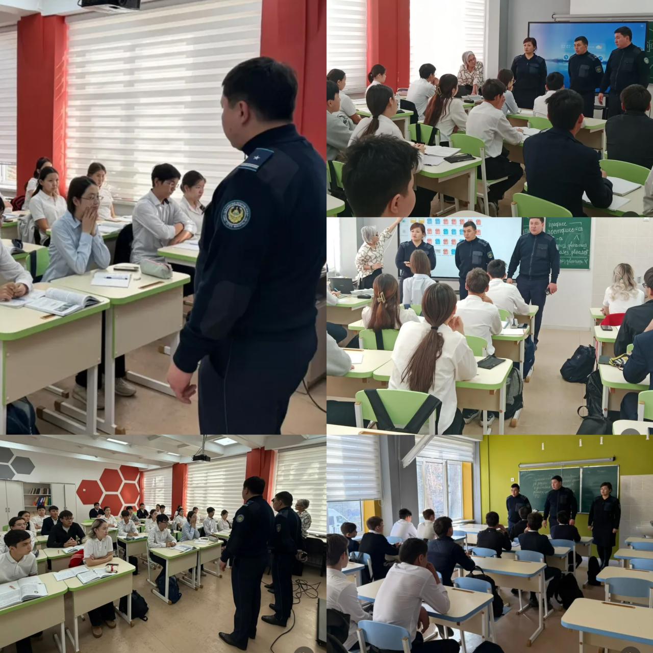 Оқушылар құқықтық жауапкершілік, киберқауіпсіздік, суицидтің алдын алу, мектеп ішіндегі тәртіп пен қауіпсіздік ережелері жөнінде толыққанды ақпарат алды.