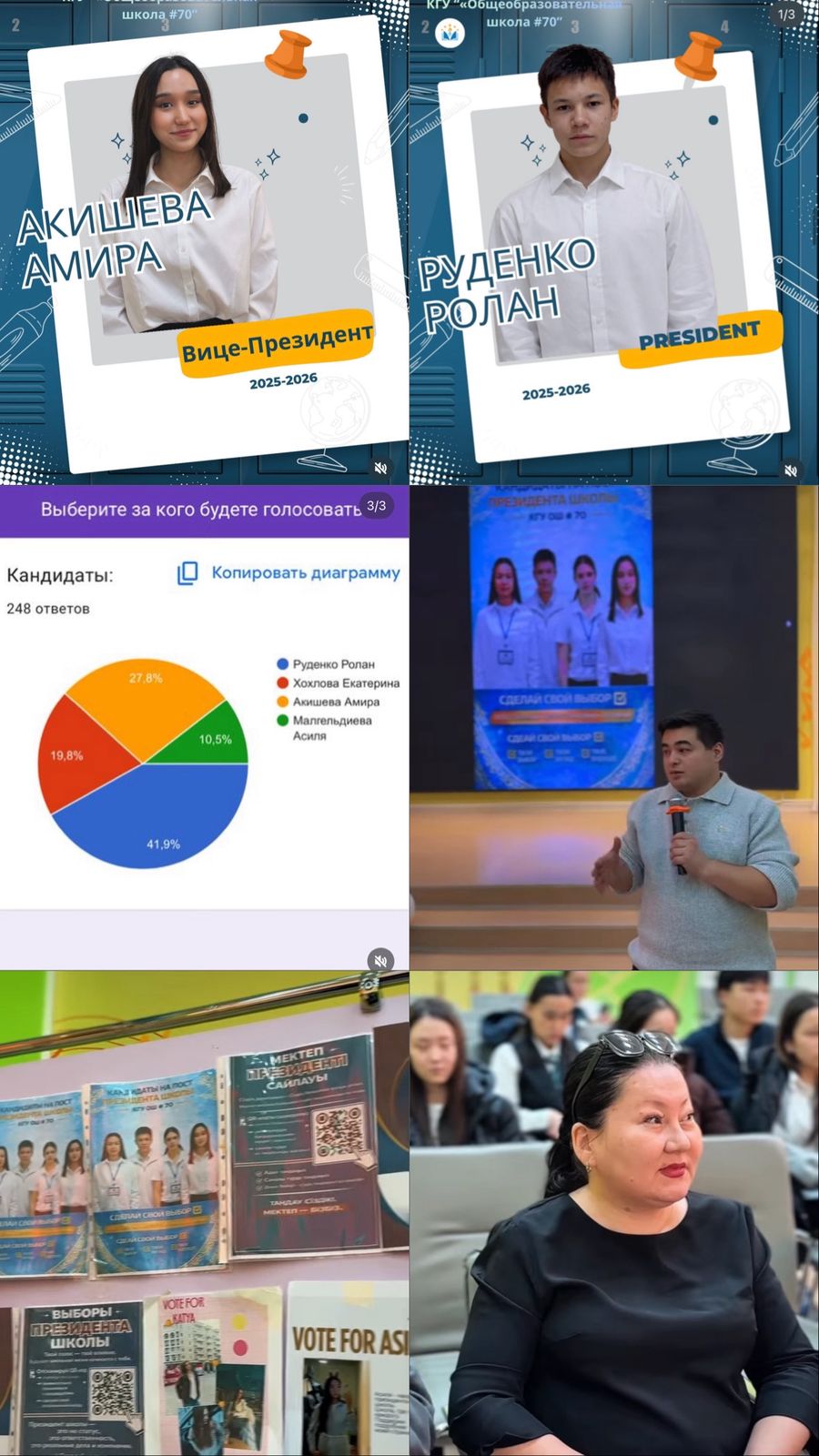 Президентом КГУ «Общеобразовательная школа № 70» избран ученик 10 Б класса Руденко Ролан🏆