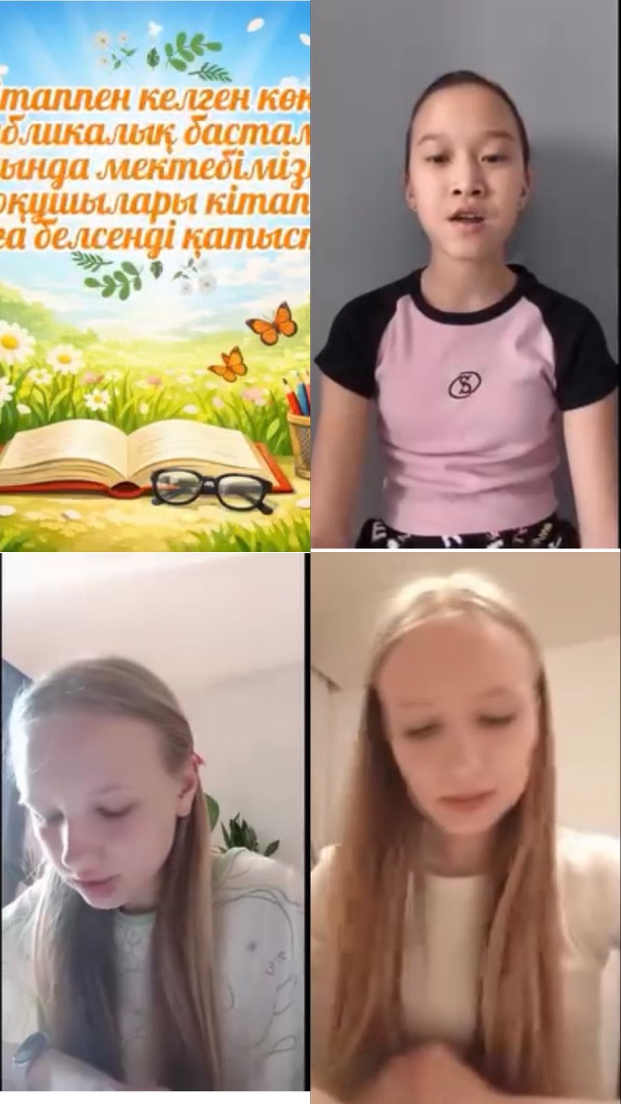 📚 «Кітаппен келген көктем» республикалық бастамасы аясында мектебіміздің оқушылары кітап оқуға белсенді қатысуды жалғастыруда. 6 «Ә» сынып оқушысы Абдыкалыкова Айлин, 7 «В» сынып оқушылары Гребенщикова Яна және Шевцова Виктория өздері оқыған кітаптарымен бөлісіп, әсерлерін жеткізді. Бұл бастама оқушылардың оқу мәдениетін қалыптастырып, ойлау қабілетін дамытуға ықпал етеді.