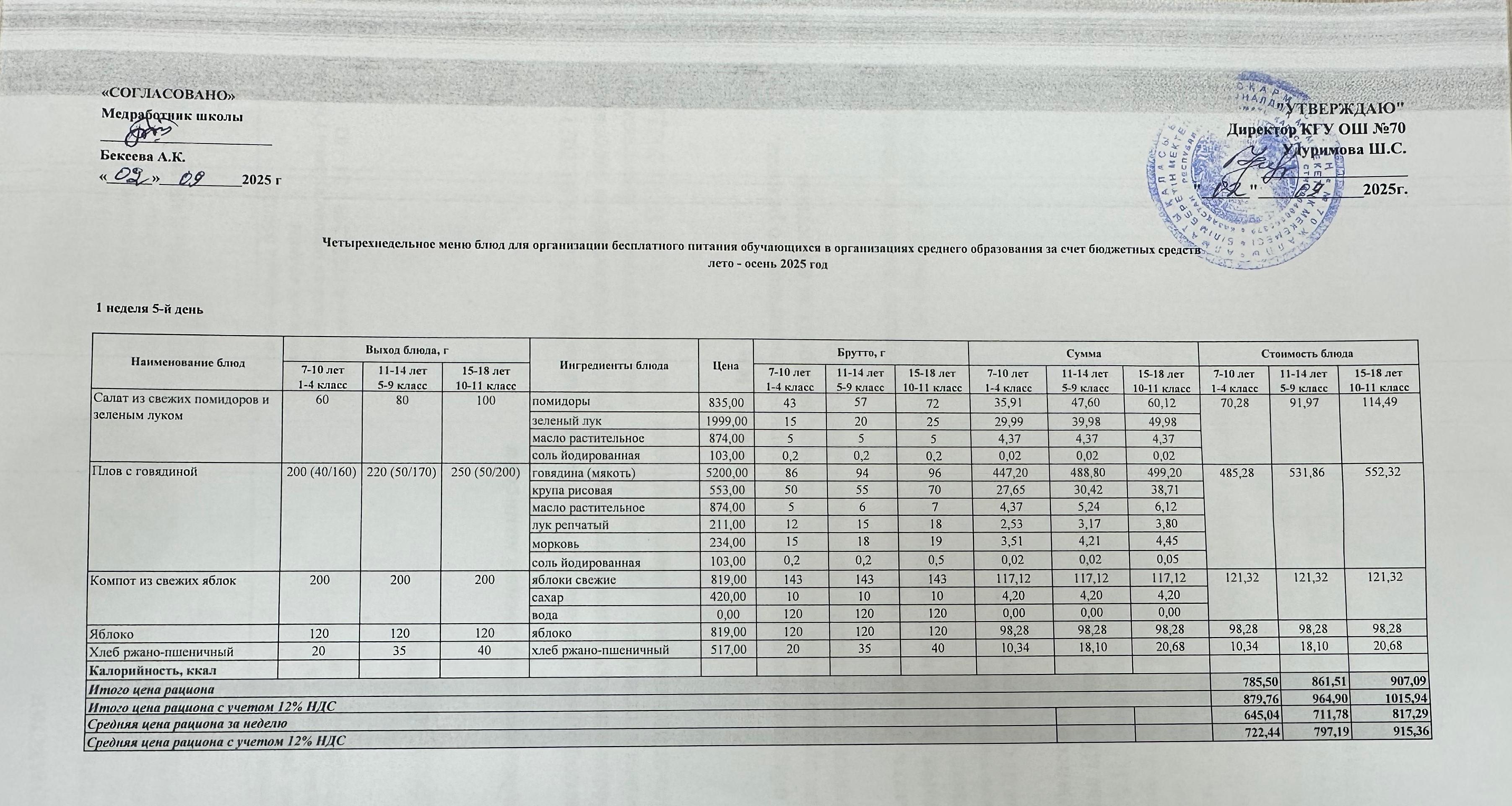 ТӨРТ АПТАЛЫҚ АС МӘЗІРІ (ЖАЗ-КҮЗ 2025) 1 АПТА, 5 КҮН. ЧЕТЫРЕХНЕДЕЛЬНОЕ МЕНЮ БЛЮД ДЛЯ БЕСПЛАТНОГО ПИТАНИЯ