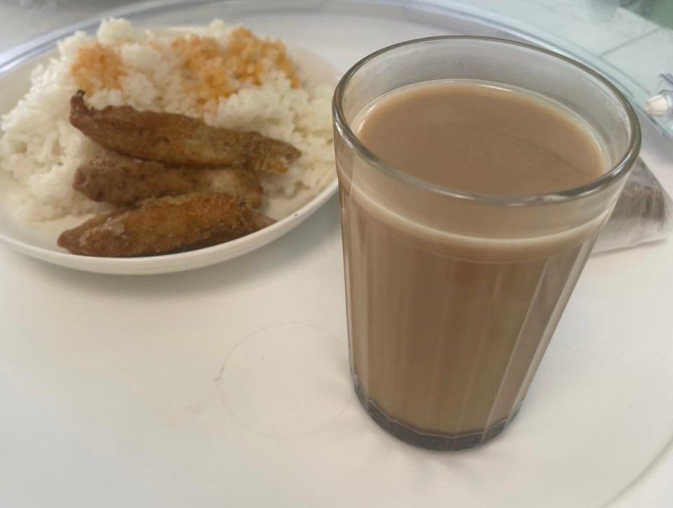 Меню третьего дня первой недели: куриные палочки, соус основной, на гарнир рис припущенный, какао на молоке и хлеб ржано - пшеничный