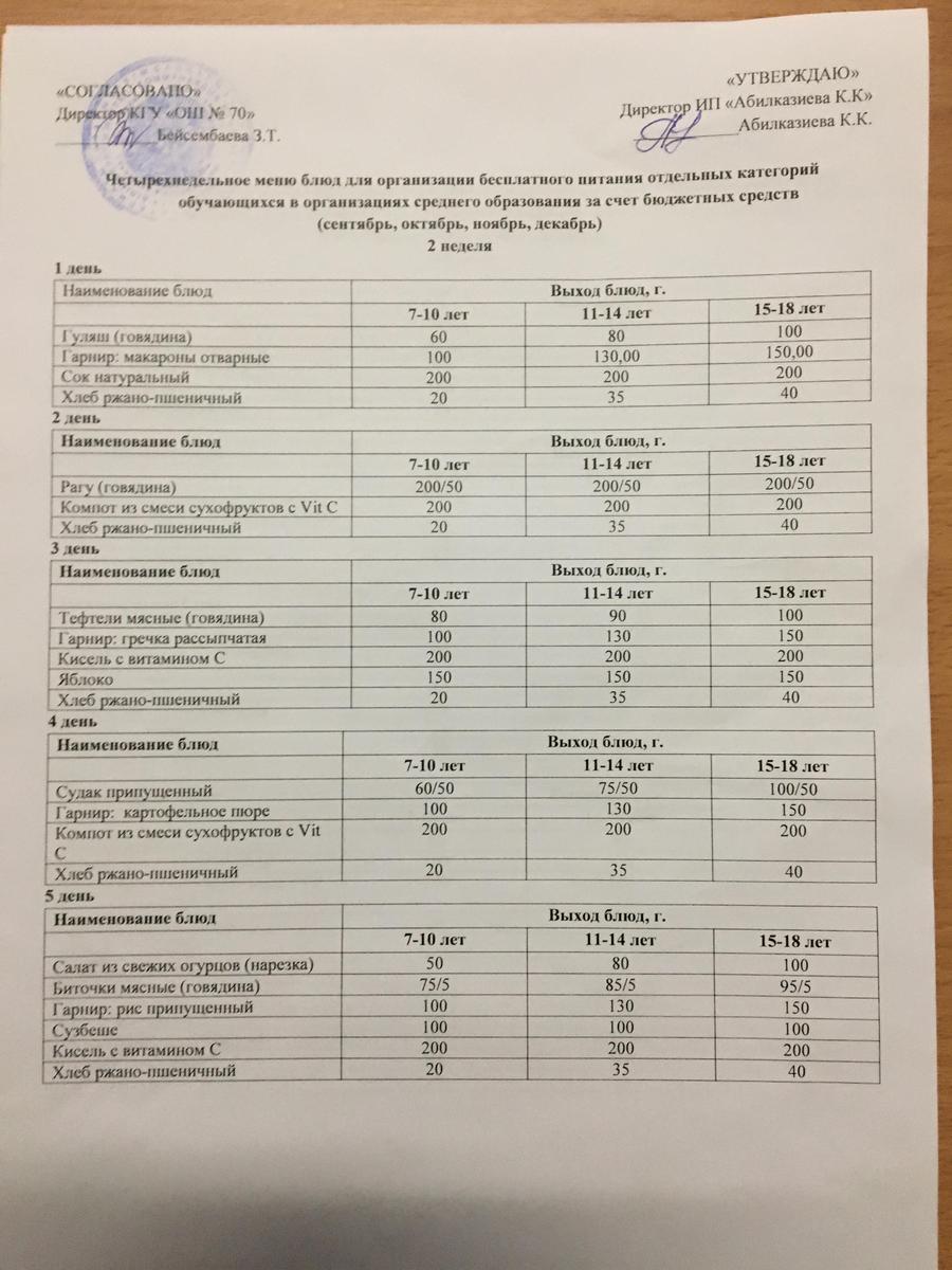 » Меню сентябрь 2022 года (2 неделя)