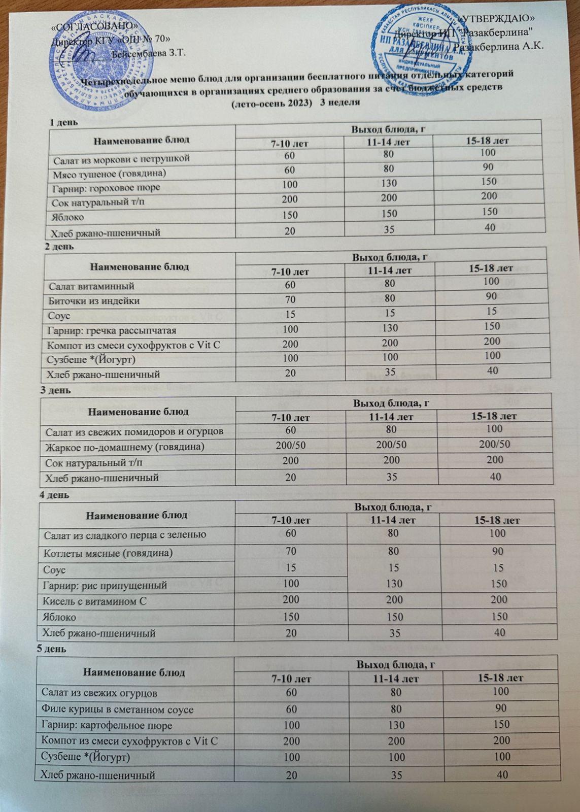 Ежедневное меню учащихся, питающихся за счет фонда Всеобуча. 10.01.2023
